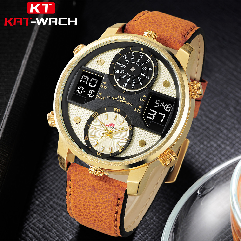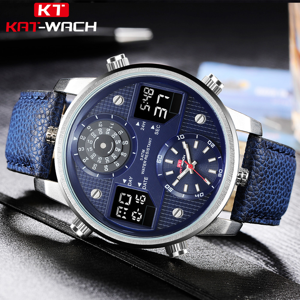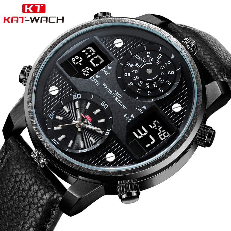 Men's Sport Watches 5 ATM Waterproof Ana-Digital Dual Display