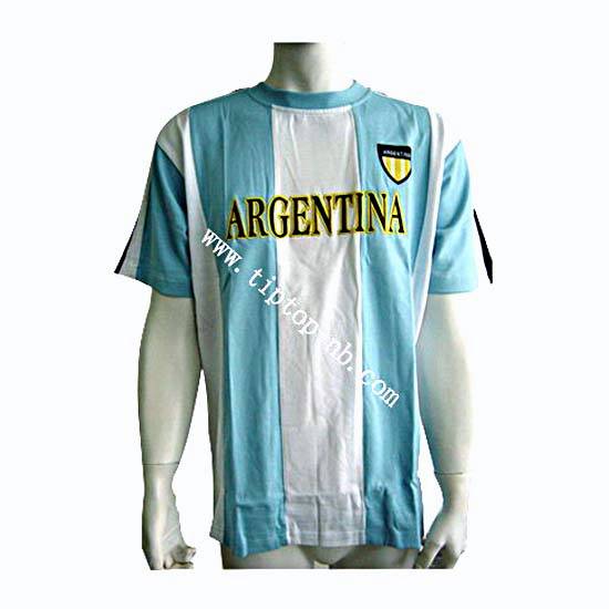 This men's T-shirt is a fashionable choice for sports fans. It boasts white and light blue stripes with embroidery at the front. This comfortable shirt is a perfect for sports fans to show their enthusiasm.
