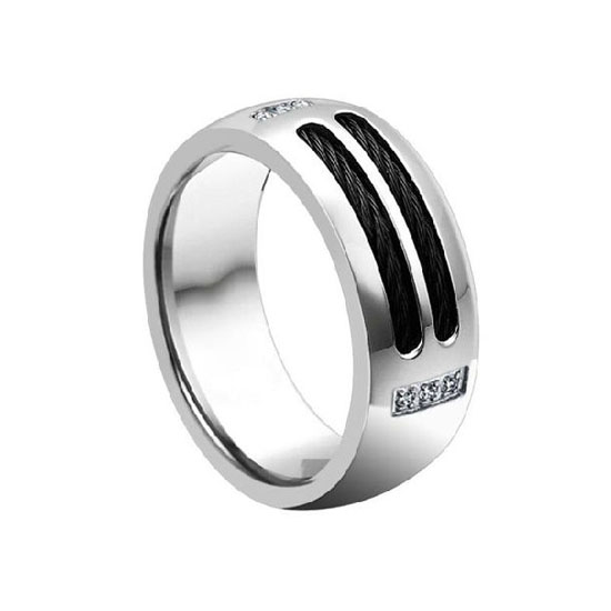 This ring for men exhibits extraordinary toughness and durability with the stainless steel material. It is embellished with shining cubic zirconia stones for a stylish touch. This simple ring is ideal as a wedding ring.