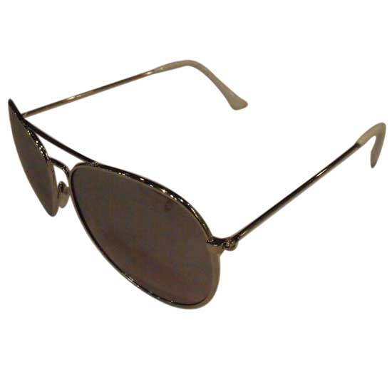 Highlighted is a pair of men's sunglasses in a classic aviator style. The slim metal frame is polished with a shiny mirror effect. The lenses can shield your eyes from harmful sunlight in a cool way.
