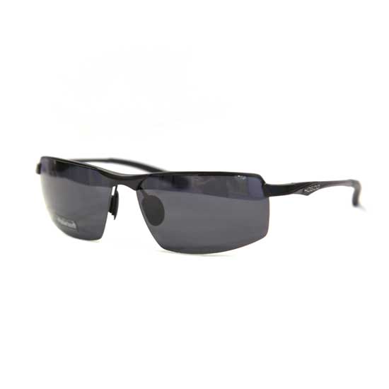 These men's sunglasses feature a stylish half-rim design with a black frame and black lenses. The precise construction fits the wearer's face perfectly. The nose pads can be adjusted too for enhanced comfort.