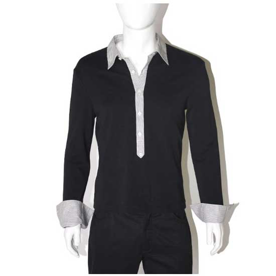 This men's shirt sweater strikes a fine balance between style and comfort. The collar, placket and cuffs detail in gray adorn this casual garment. Pair this flattering sweater with any pair of pants for an elegant, effortless look.