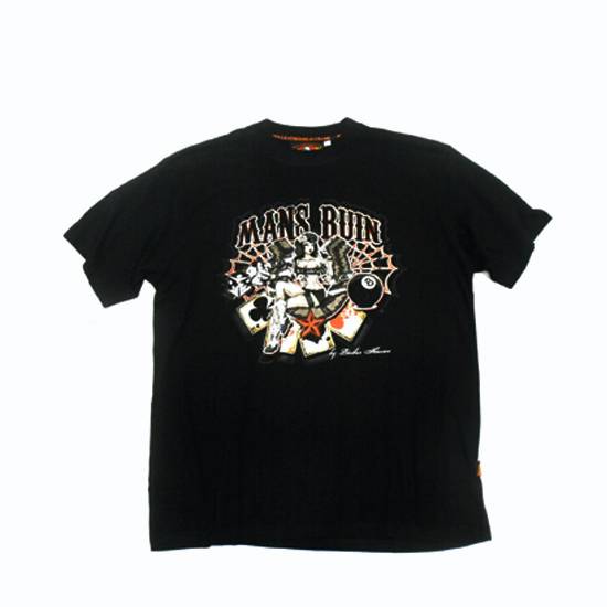 This black T-shirt features printed logos and characters at the front for a punk style. It is made of cotton for breathability and great wearing comfort in the summer time. Match this T-shirt with jeans and create a smart look today.
