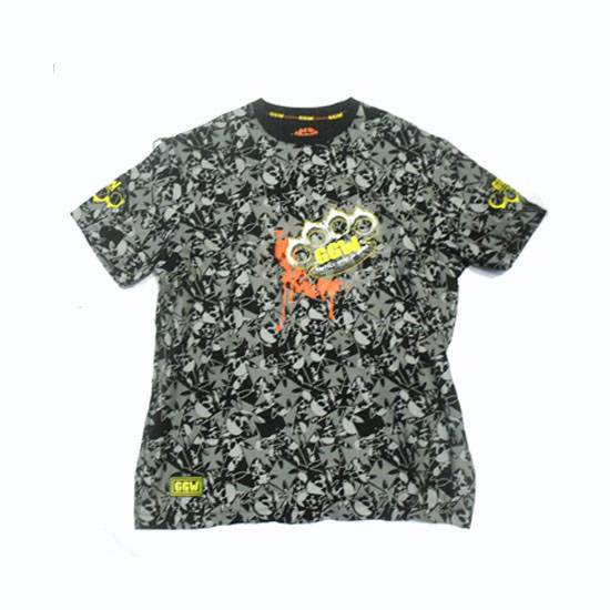 This T-shirt is filled with irregular graphic patterns to give out a modern and fun design. The yellow-and-orange logo adds extra style to the tee. This T-shirt is a comfortable item for outdoor activities in summer.