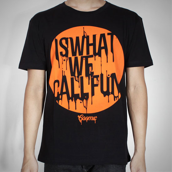 This black men’s T-shirt comes with a round collar and short sleeves. The front is printed with creepy black lettering on a big bright orange circle. Pair the printed T-shirt up with your jeans to convey a cool look for the summer.