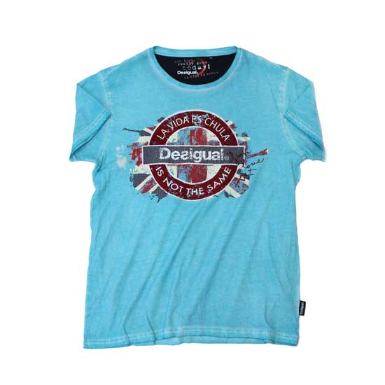 This round-neck T-shirt for men features a bright blue exterior with an attractive pattern at the front. The pure cotton construction ensures luxurious comfort for wearers. This eye-catching T-shirt looks great with jeans.