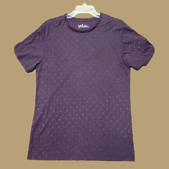This men’s T-shirt is made of a blended fabric that is 50% cotton and 50% viscose. It comes in allover dark purple with exquisite dot patterns. This T-shirt goes well with different kinds of trousers for a casual look.