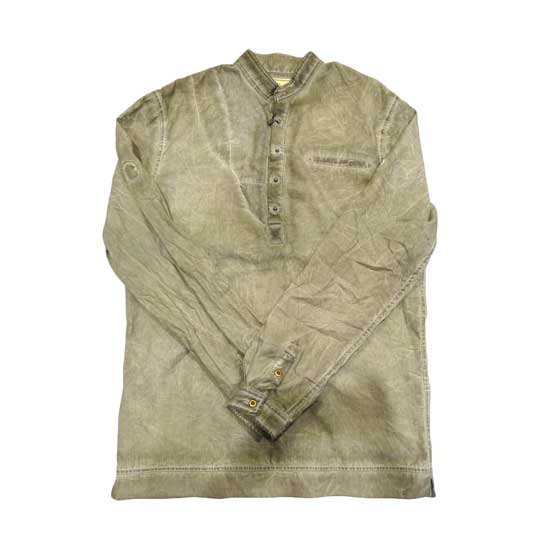 This shirt comes with a worn-out, vintage style. The button-up shirt is detailed with a crew neckline and gold push-buttons on the long sleeves. The retro shirt is an essential piece to show your own distinctive style.