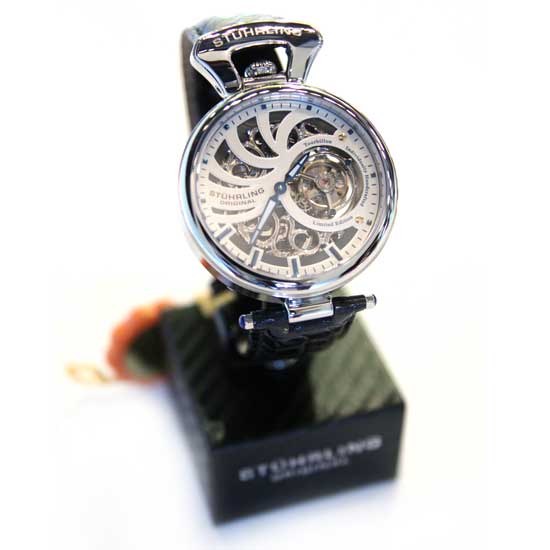 The watch catches attention at your first glance with its demonstration of detailed inner workings. It comes with a huge round-shaped dial with delicate cutouts. Its leather-made straps also line your wrist with luxury.