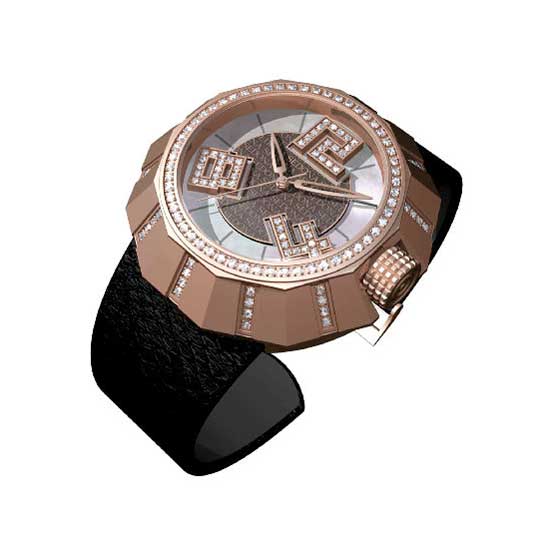 This men's watch stands out from the rest with its unique, fashionable and charming appearance. Its case is designed in a distinctive shape with sparkling stone elements. The dial comes with 3 Arabic numbers which is also adorned with shimmering stones.