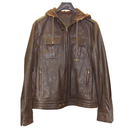This is a brown coloured men's jacket which is long sleeved, has hood and equipped with 2 flap pockets and 2 zippered pockets.