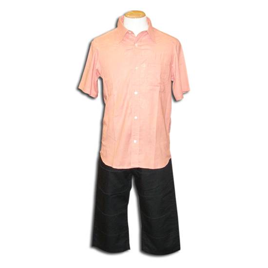 • This is a men's causal outfit featuring a shirt and a short.