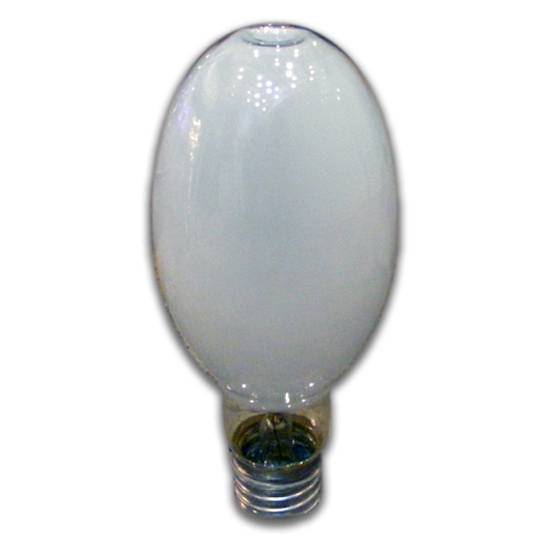 This is a mercury light bulb which is of oval shape and it gives off either white or yellow light. The light bulb can be operated by A.C. current.