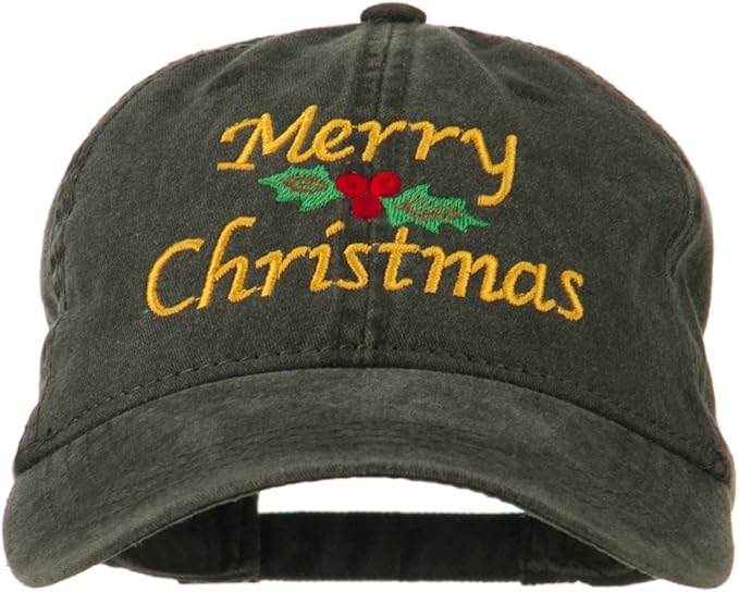 Merry Christmas Mistletoe Embroidered Washed Dyed Cap
