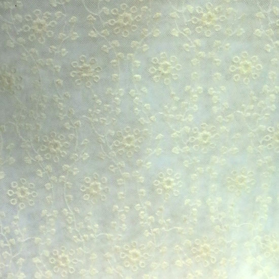 This is a mesh lace that is finely crafted with refined details. It is accented with meticulously-designed floral patterns. This mesh lace is a high-quality material for making a wide range of garments.