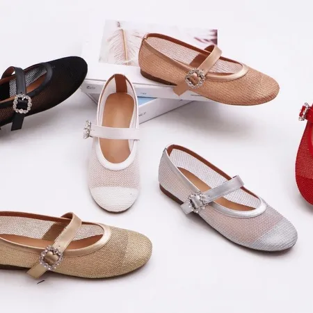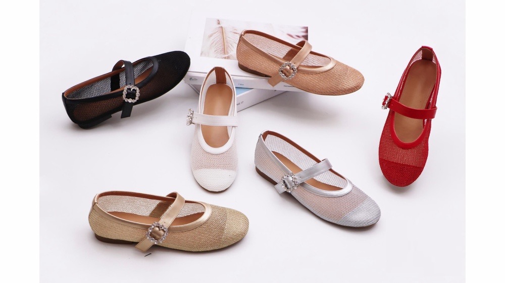 Contemporary twist on classic Mary Jane ballet pumps with eye-catching mesh construction.