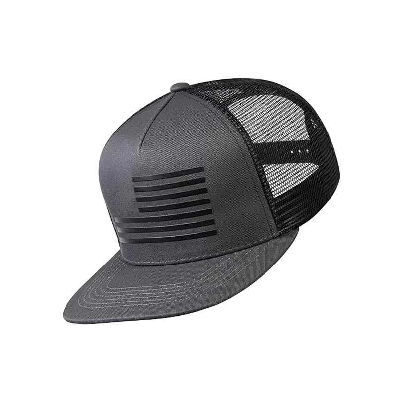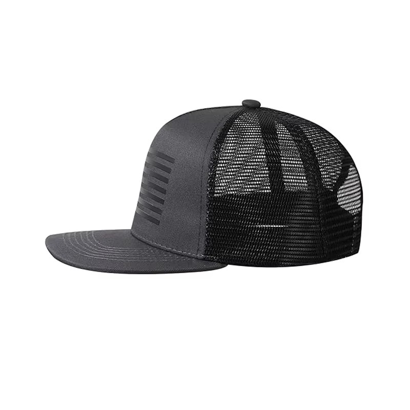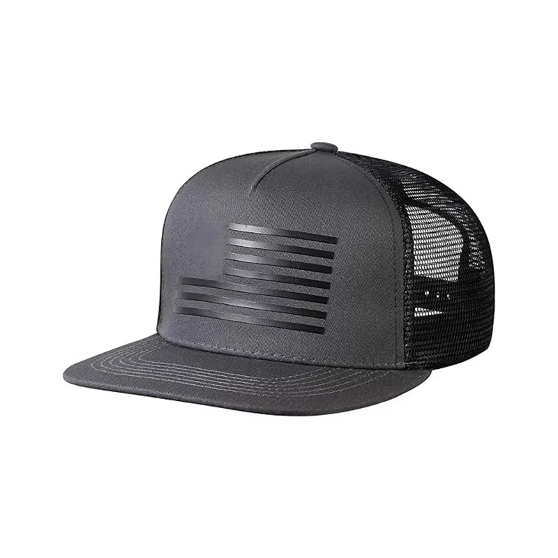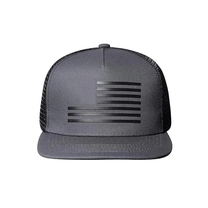 | Design | 5-Panel Flat Brim Trucker Cap with US Flag Embossed Patch |
