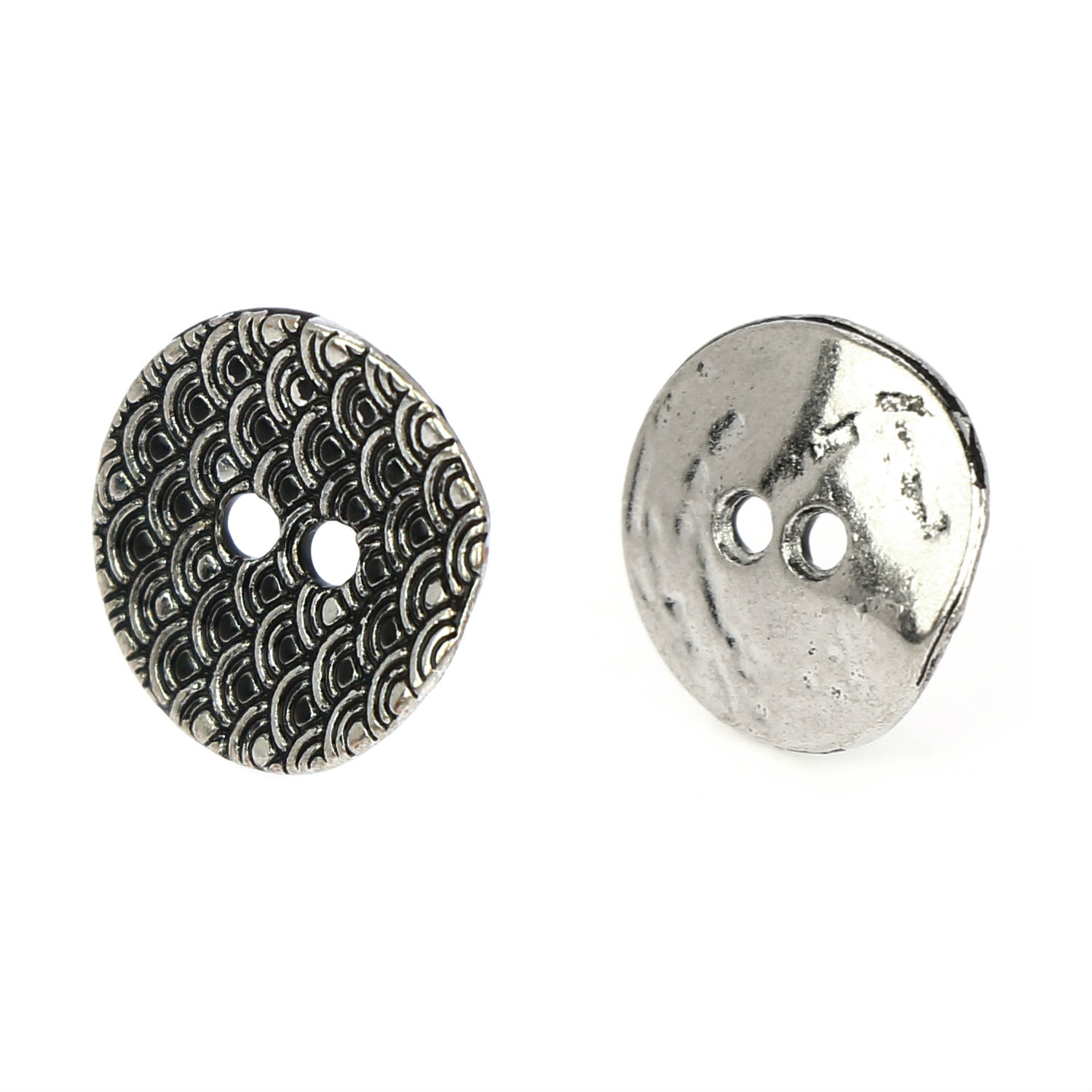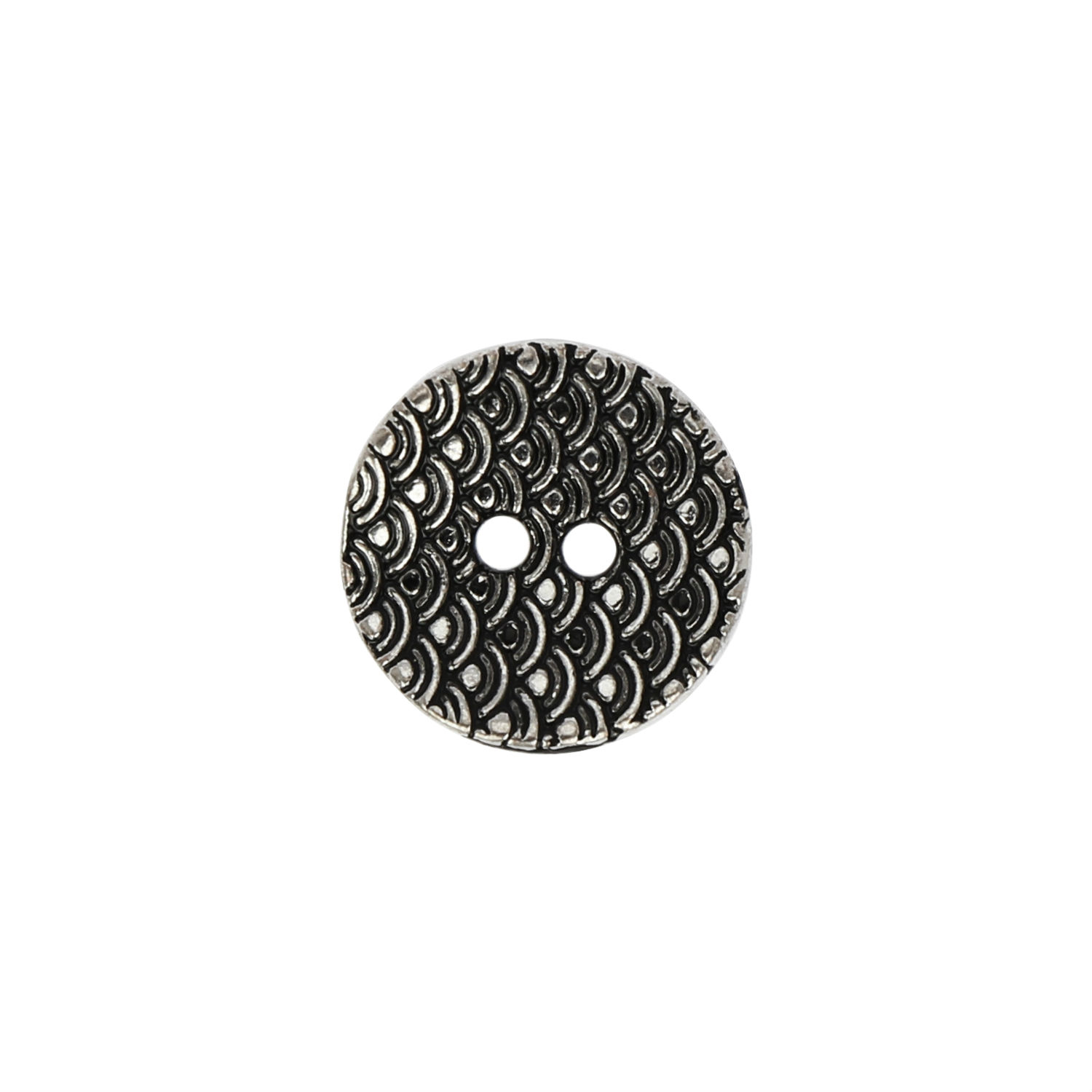 This two-hole sport a distinctive design with textured scalloped patterns on the flat top, which enhances the garment items with a sense of uniqueness in a subtle way. It boasts a rugged construction of enamel-plated alloy that is suitable for applying to thick fabric.