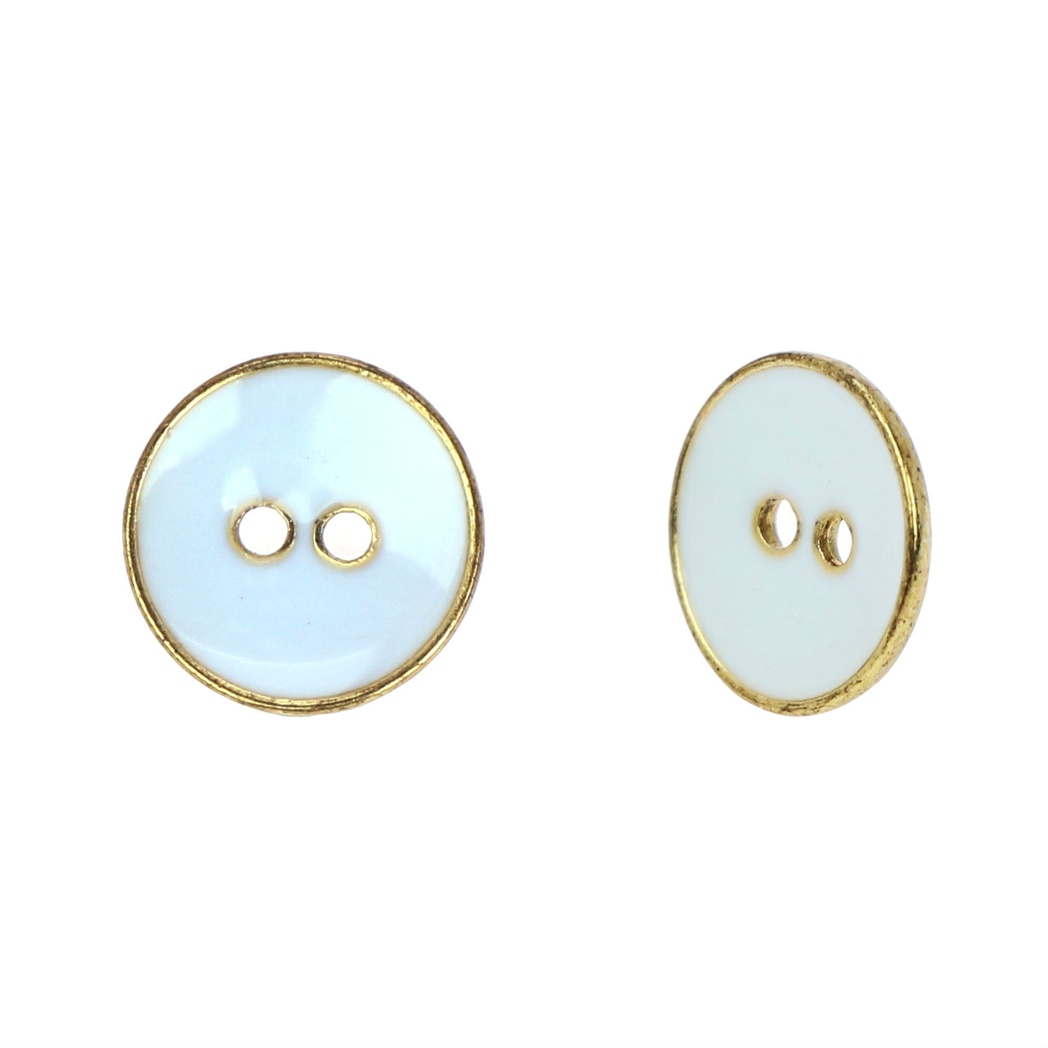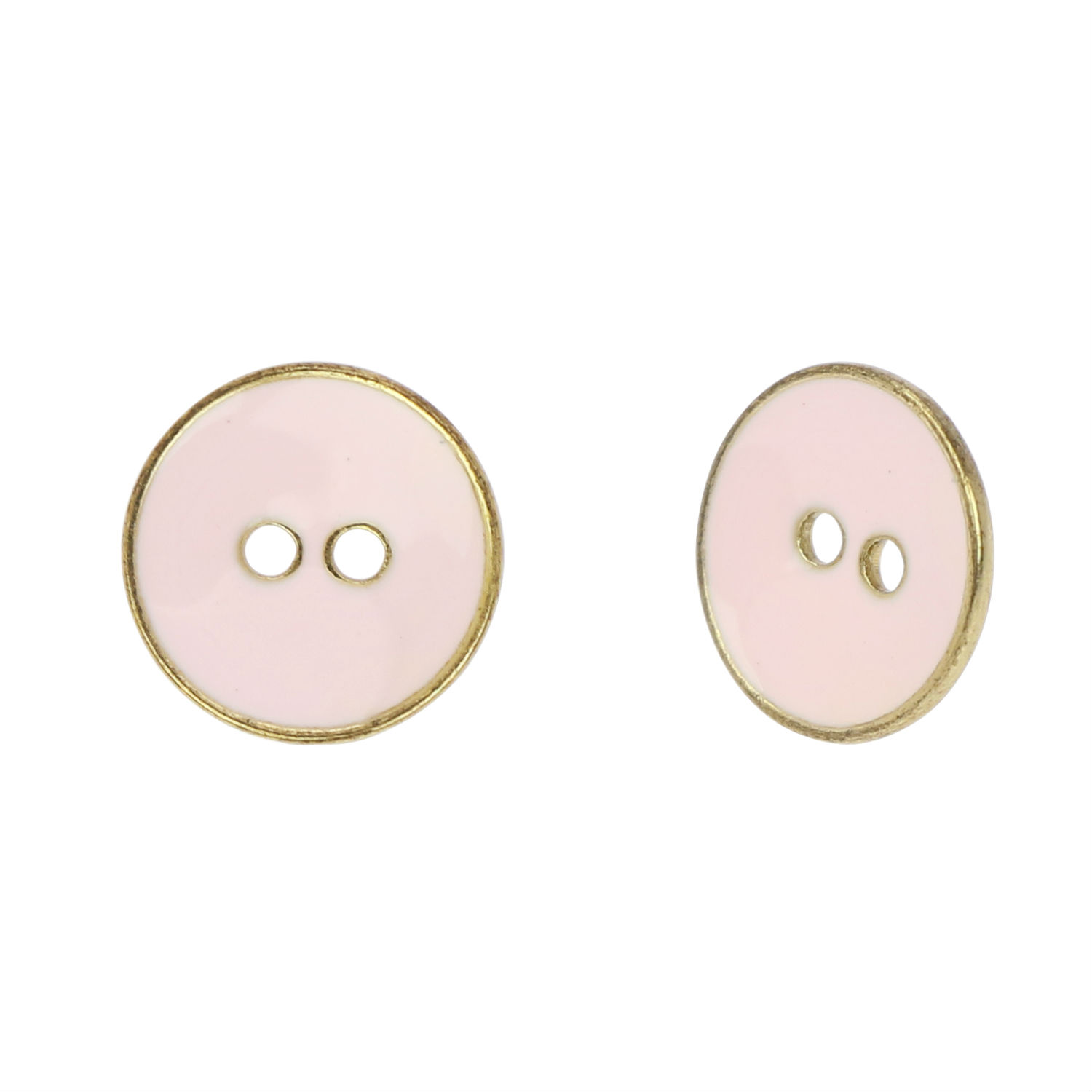 This 11.5mm round-shaped button is crafted of alloy, boasting an elegant design with the pastel-toned epoxy top layer. The metallic edges outline the button for a luxurious touch, making the button look nice on silk garments and lightweight knitwear.