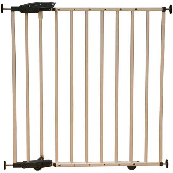 This stylish, secure, extending metal gate has been tested according to the European and American norms. The handle can be operated with one hand easily without sacrificing safety. The design of this gate leaves the opening clear once the gate is open with no frame to step over. The choice between a pressure-fit only and a wall-mounted system allows you to customize the gate for your own needs.
