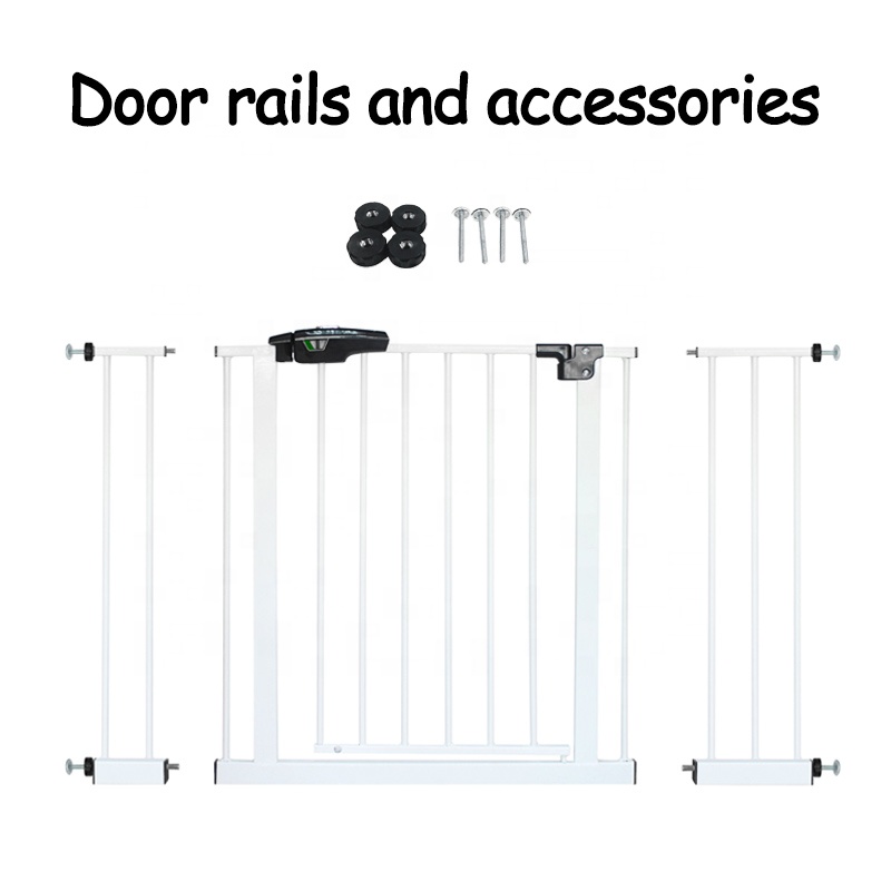Highlighted here is a pressure mounted baby safety gate with a durable metal construction. It can be mounted on walls without causing damage and can close automatically. This safety gate can prevent youngsters from wandering around and is excellent for keeping them safe.