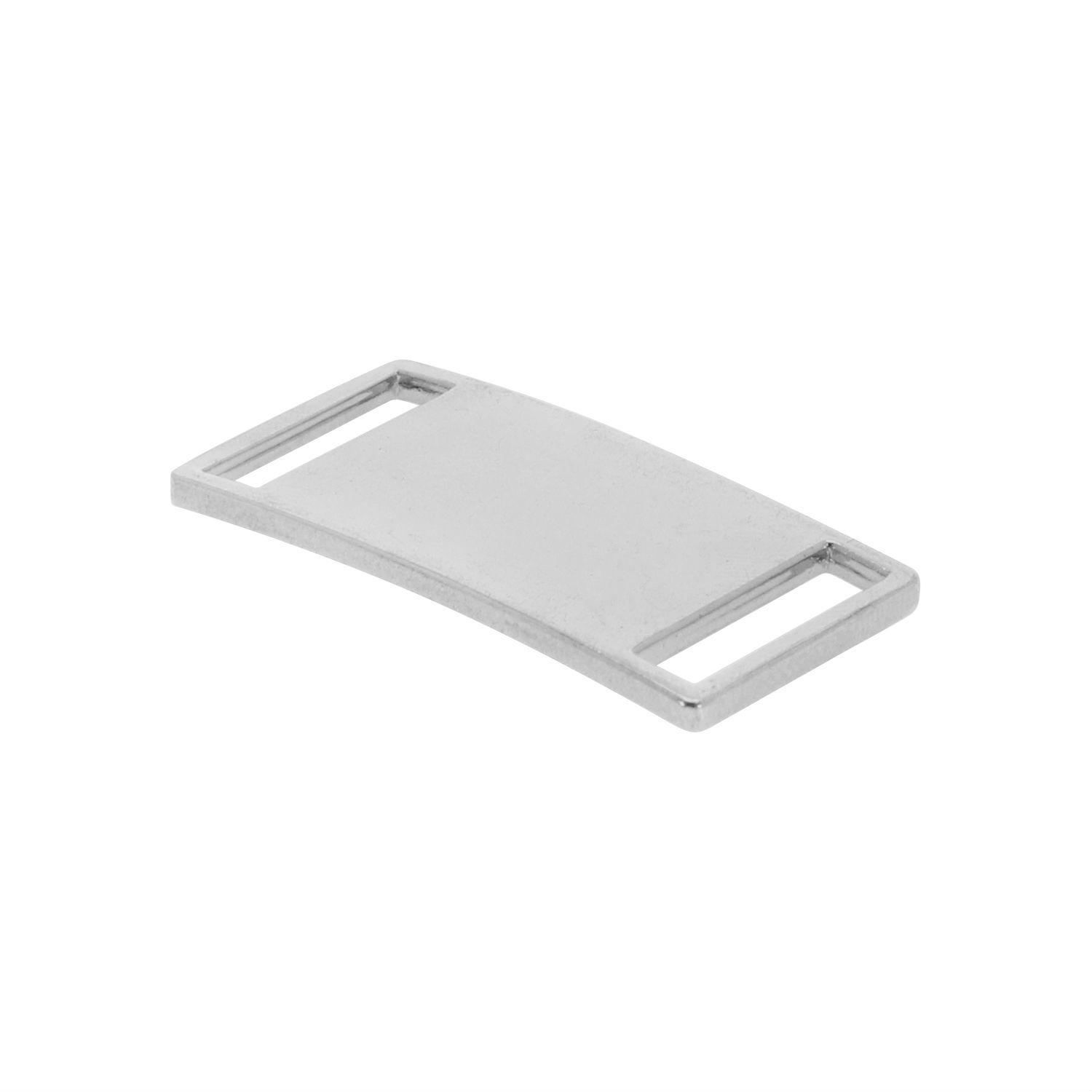 Made of durable alloy material, this badge is perfect as a component for bags and belts. It comes in a curved rectangular shape and has an HP plated finish in a metallic tone. This alloy badge has two slots on the sides for attaching to straps and allows convenient length adjustment.