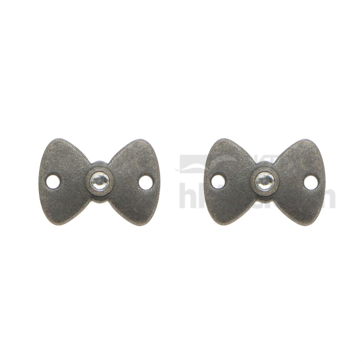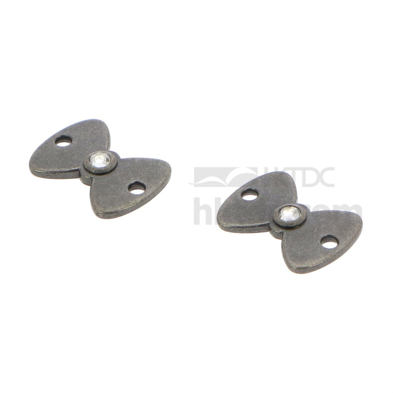 Decorate garments, bags and other products with this alloy sew on badge. It comes in the design of a bowtie and is embellished with a gemstone in the center. This plated alloy badge has two holes on the side for attachment and can add a lovely touch to your garment projects.