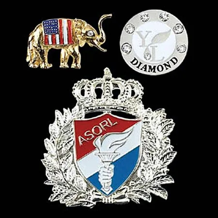 These are metal badges in assorted colors. The refined craftsmanship and shimmering stone accents add a touch of sophisticated glamor. Badges with different designs, colors and sizes are available for meeting different preferences of users.