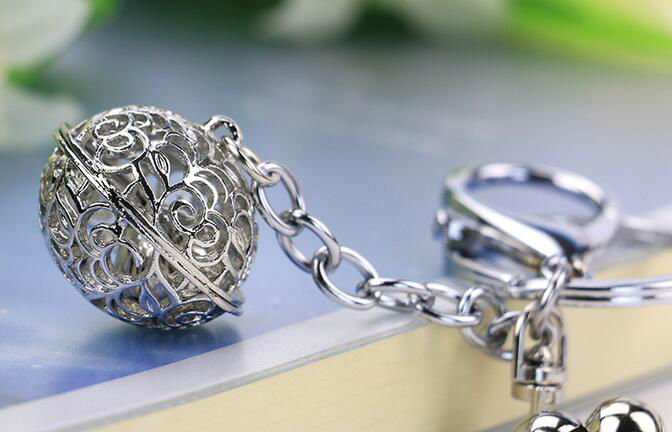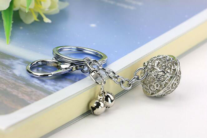 metal bell keychain displayed is made of zinc alloy material