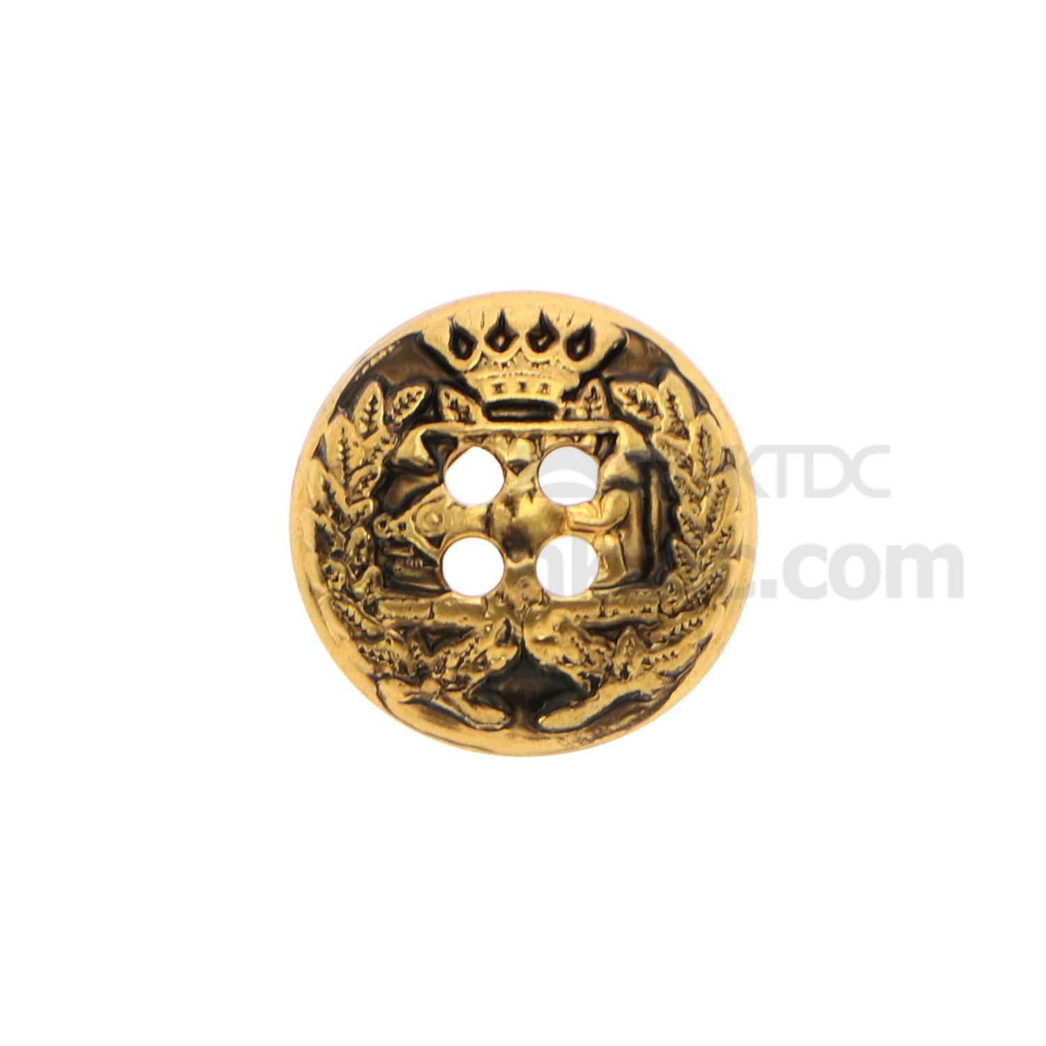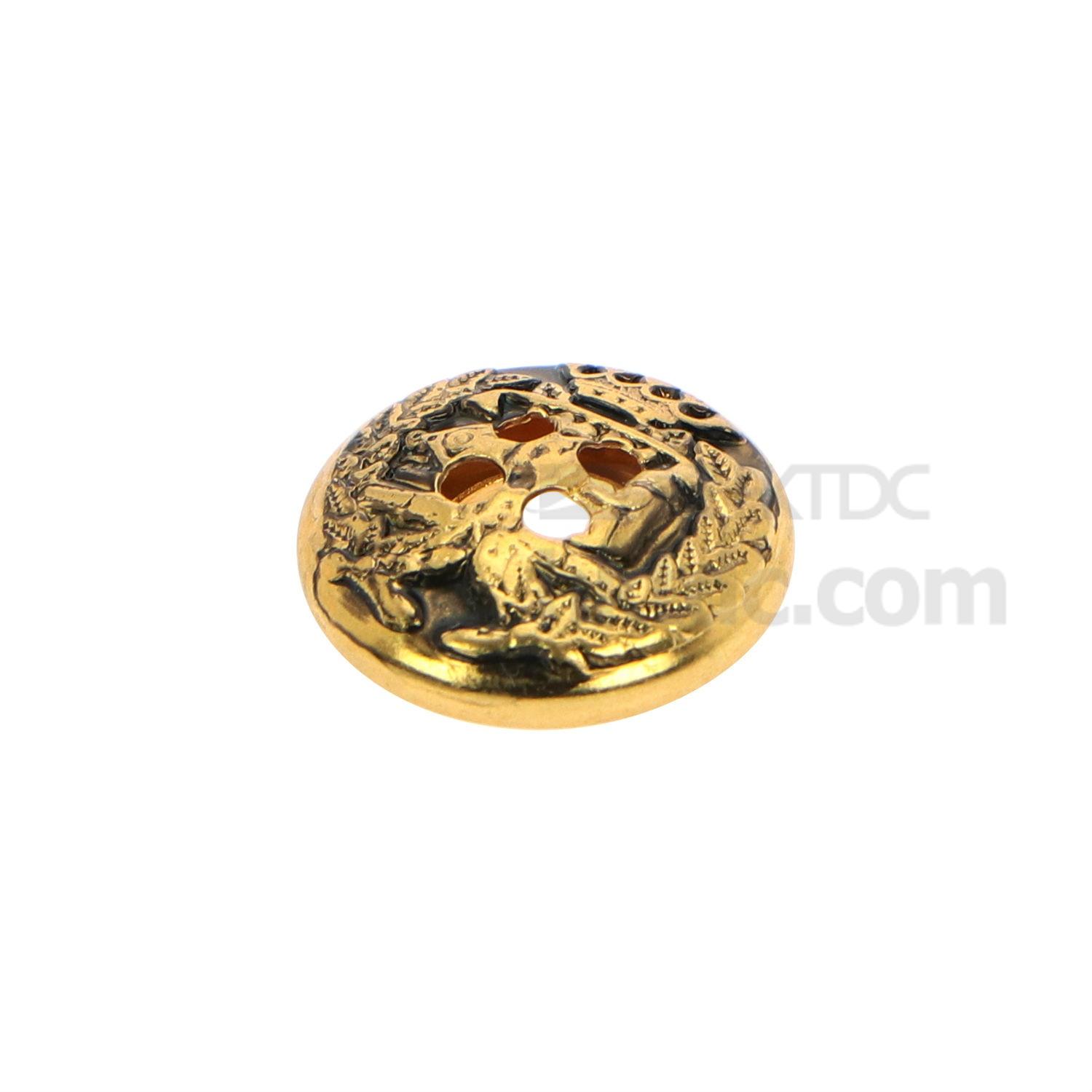 Add a classy and refined touch to garments with this brass button. It comes in a round shape and is embellished with elegant patterns on the surface. This brass button has four holes for sewing on and provides secure and convenient fastening.