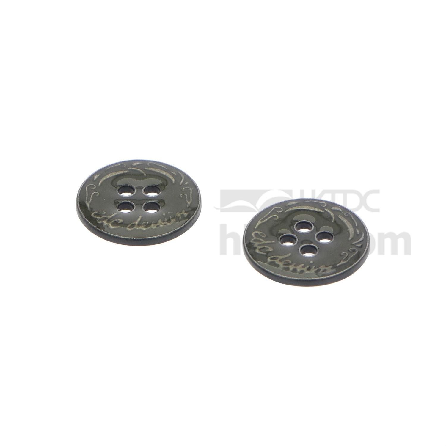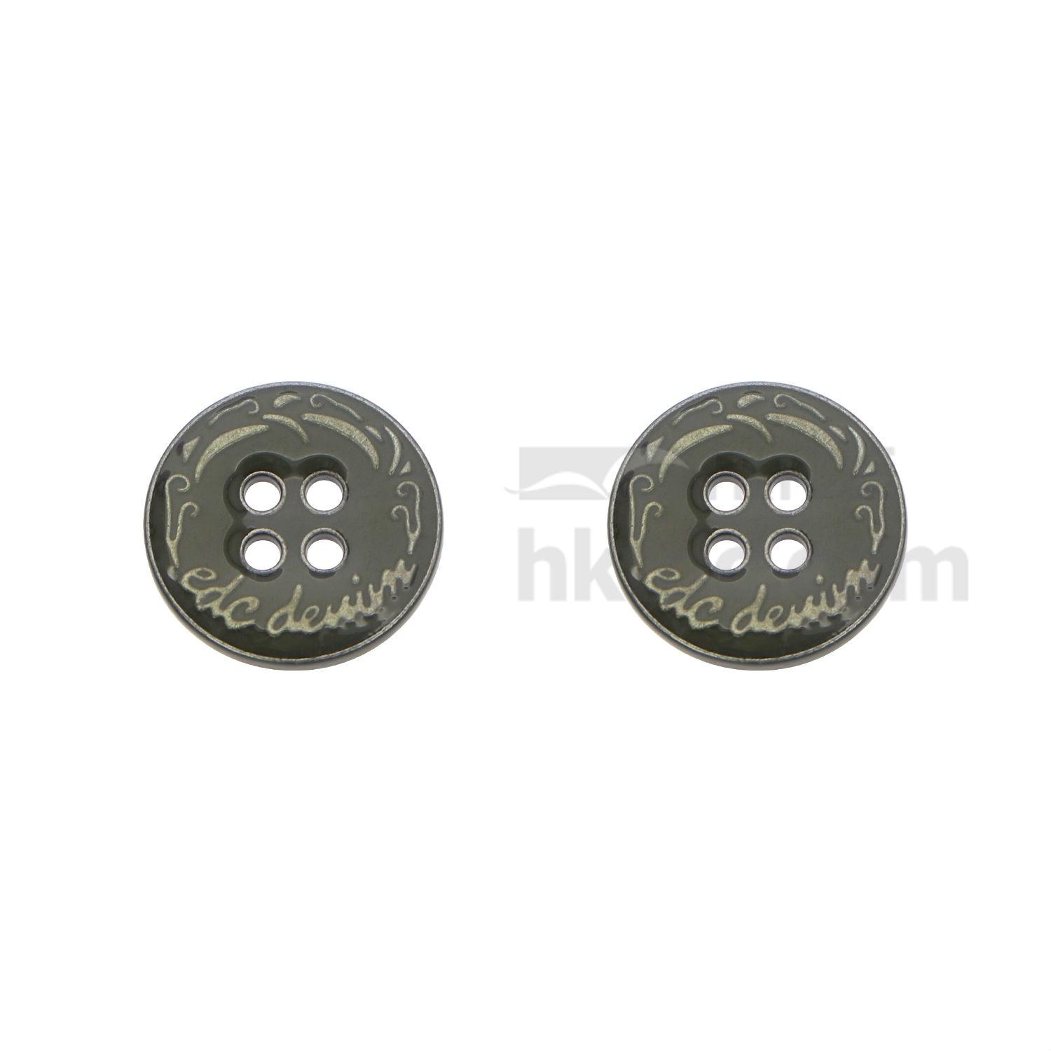 Fasten jeans, jackets and other denim products with this alloy button. It comes in a round shape and has a glossy epoxy surface with plating finish. This alloy button can show words on the surface and has four holes for sew-on attachment.