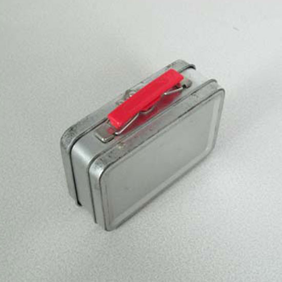 This small high-quality can is made of top-grade metal for durability. It comes with a luggage-like design for a unique touch. This metal can is finished with a durable handle in bright red.