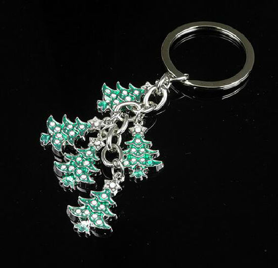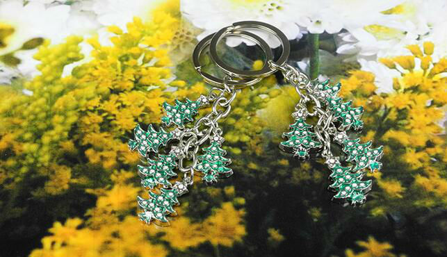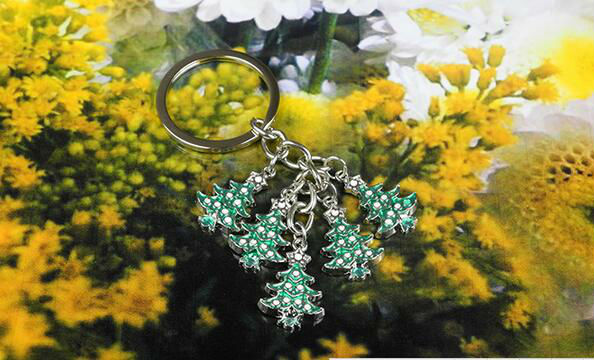 metal Christmas trees keychain displayed is made of zinc alloy material