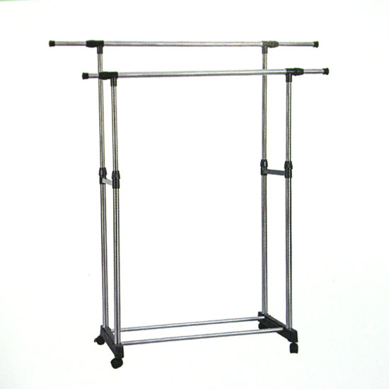 This clothes shelf adopts a unique adjustable uneven-bar design for efficient use of space. The clothes rack is made with top-quality metal for extra durability. This clothes rack provides a simple but effective way to keep your clothing organized.