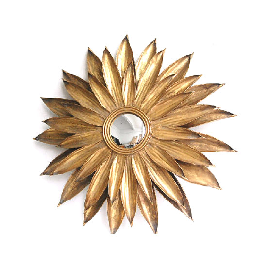 This flower-shaped mirror blossoms with full elegance. Each petal is finely made of metal and refined with an antique golden finish to boast an exquisite flair. This mirror makes a wonderful decoration for your room.