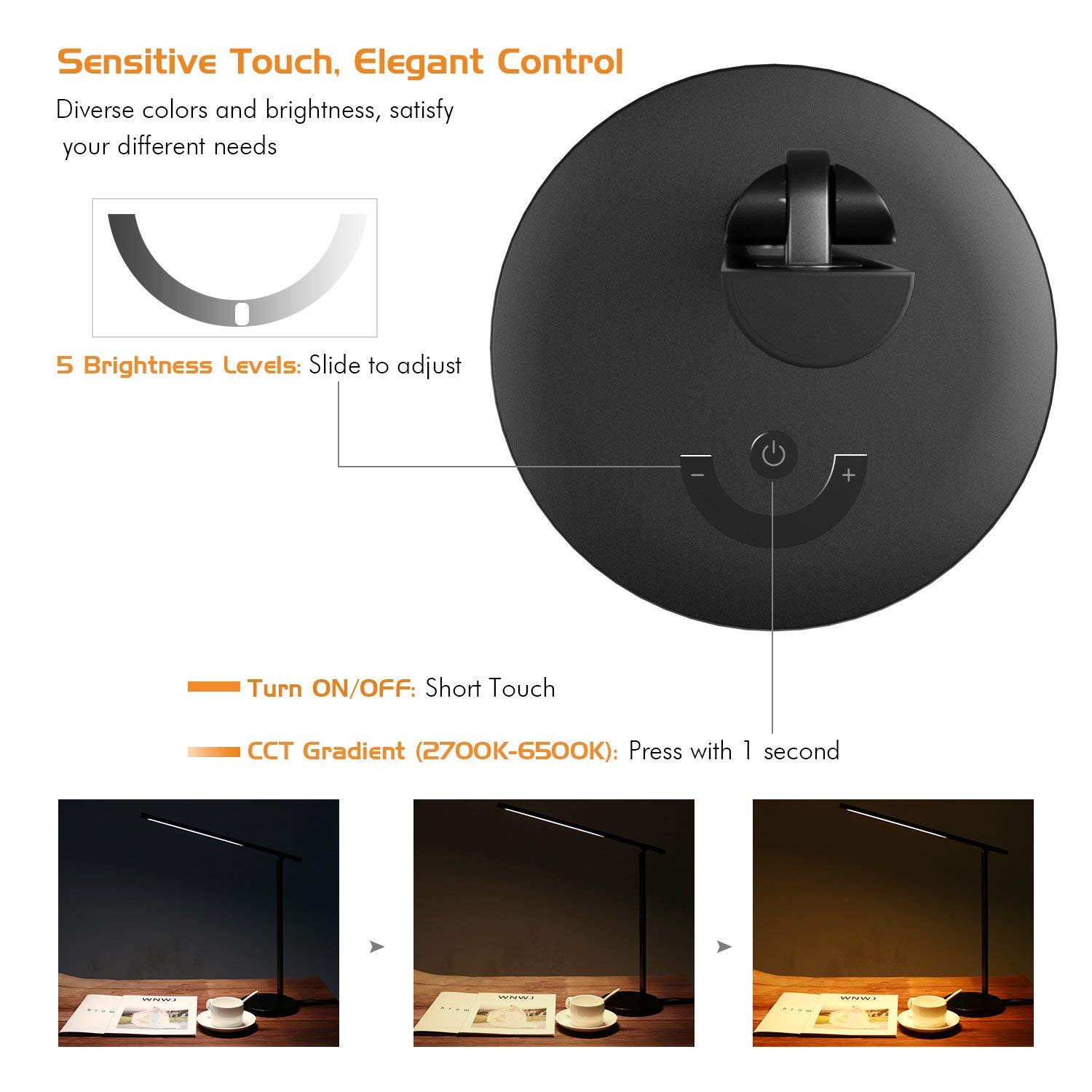 Metal Desk Light Dimmable Eye-caring with Touch Control, Stepless Brightness/Color Temperature