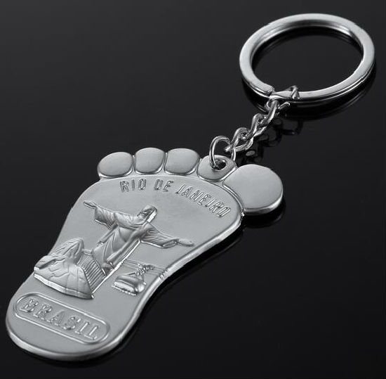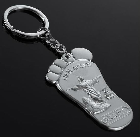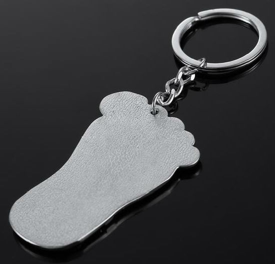 Metal foot keychain displayed is made of zinc alloy material