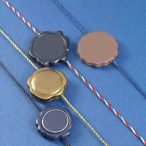 The rectangular seals are made of high-quality cardboard with polyester ropes attached at both ends. Housed in sturdy antimony(Sb) casings, they guarantee excellent structural strength and lasting durability. These metal seals are great for decorating various garments.