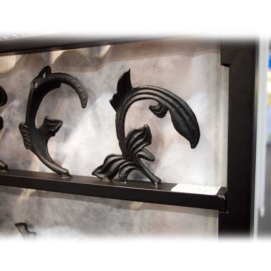 The presented metal gate features rugged iron construction. The curved leaf details present an exquisite look. This displayed metal gate is suitable for both indoor and outdoor use.