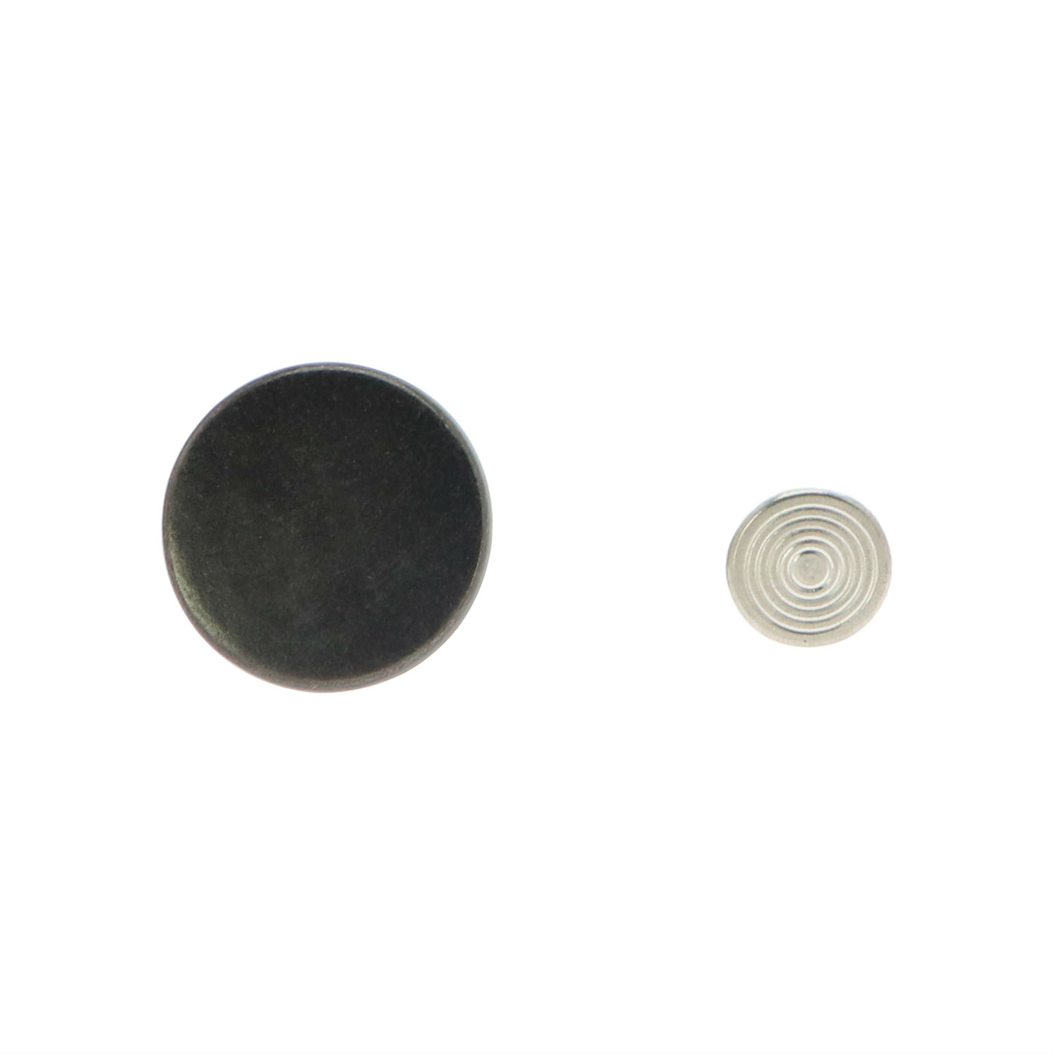 Fasten jeans in a secure and classy way with this alloy button. It comes in a two-part design and has a round cap with a plated finish. The alloy button has a nail for easy installation and can match well with jeans in any style.