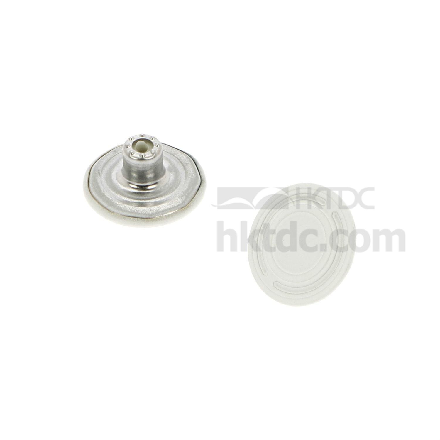 Your new jeans collection would never be complete without the right buttons, so presented here is a versatile and classic jeans button that goes with jeans in all styles and colors. Crafted in the traditional plate-like silhouette, this jeans button features subtle ring-like details and is completed with an enamel finish for a minimalistic and timeless appeal. Simple and versatile, this button goes with denim skirts, flared jeans, skinny jeans, and denim jackets alike.