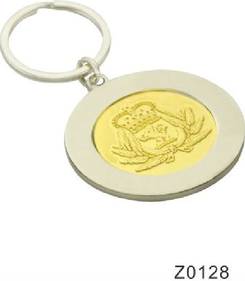 The displayed key ring is made of metal and has a round ornament with gold toned logo in the center. It has a round shaped split ring for attachment and is excellent for decorating keys. This classy and elegant key ring is a great gift and souvenir choice.