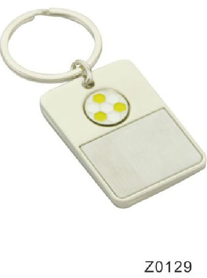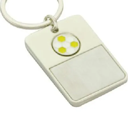 Featured here is a metal keychain adorned with a soccer ball logo. It comes with a round shaped split ring for holding keys and can be easy attached to bags. This sporty and portable keychain is great for using as a gift or souvenir.