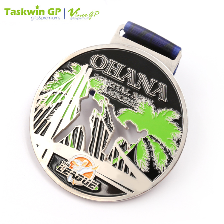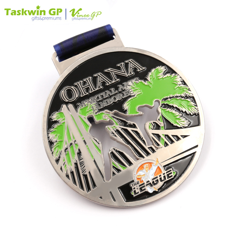 Gear up for the upcoming martial arts competition by stocking this metal medal up. The circular medal is fashioned to last with zinc alloy metal and it is specially treated with nickel and soft enamel plating to double up its longevity. Ingeniously crafted with meticulous care, it showcases a clear depiction of the competition name and logo through a colorful scheme.