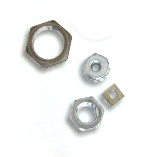 Displayed is a series of nuts made with quality metal for a long serving life. The nuts comes in various shapes to fit different washers. These quality nuts fasten plies of wood and metal securely.