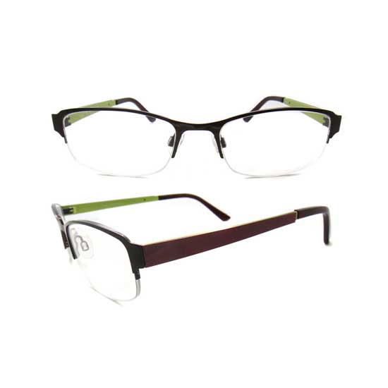 This is a metal optical frame with exchangeable temples. It features a full-rim design in assorted colors for added style. This refined spectacle frame is available in different designs for your selection.