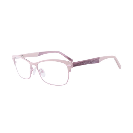 This optical frame is made of metal for a clean, smart and modest style. The temples are accented by acetate lamination for a unique touch. The nose pads can help to keep your glasses in place and maximize your wearing comfort.