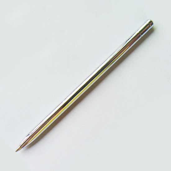 This charming pen features a shiny silvery toned body for an appealing touch. It is made of metal for durability and sturdiness. This dainty metal pen makes a delightful gift for friends.