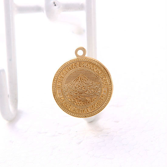 Complete your weekend outfit with this disc-like pendant of intricate and refined appeal. Crafted of excellent workmanship, it prepares an eyelet on top for easy wearing and radiates a golden sheen to capture eyes. This piece can be further used as an ornament to adorn your desktops or added to your personal collection.