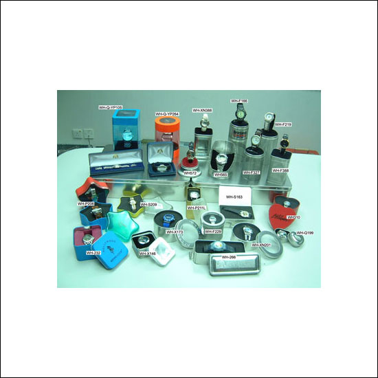 • WH-Q-YP264: size:dia.10.2 x 14.6(H)cm, watch-stand inside, round, plastic body, PVC window on lid